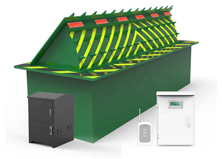 Ce bloqueur de route hydraulique 380V avec réflecteur d'avertissement jaune et finition laquée antirouille est conçu pour détruire la suspension des véhicules intrus et empêcher toute pénétration forcée dans les zones sécurisées. Toute tentative de forcer le passage de ce barrage entraîne la destruction complète des essieux du véhicule.